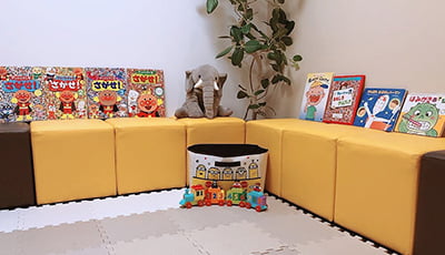 当院のキッズスペースは、小さなお子さんが楽しく遊ぶことのできる十分な広さがあり、診察までの待ち時間など退屈することなく楽しく過ごしていただけます。また、診療室の椅子に座っての治療が苦手なお子さんには、キッズスペースでの診察も可能です。少しずつでいいので歯科医院の雰囲気に慣れていっていただければと思います。