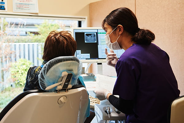 そして今後の治療計画をお話しさせていただき、患者様にご納得いただいてから虫歯の治療を開始します。虫歯が見つかったからといって、いきなり削って詰めたりはしないので安心してくださいね。